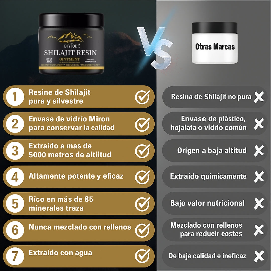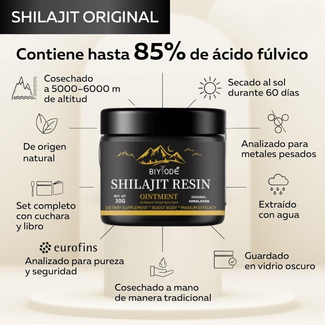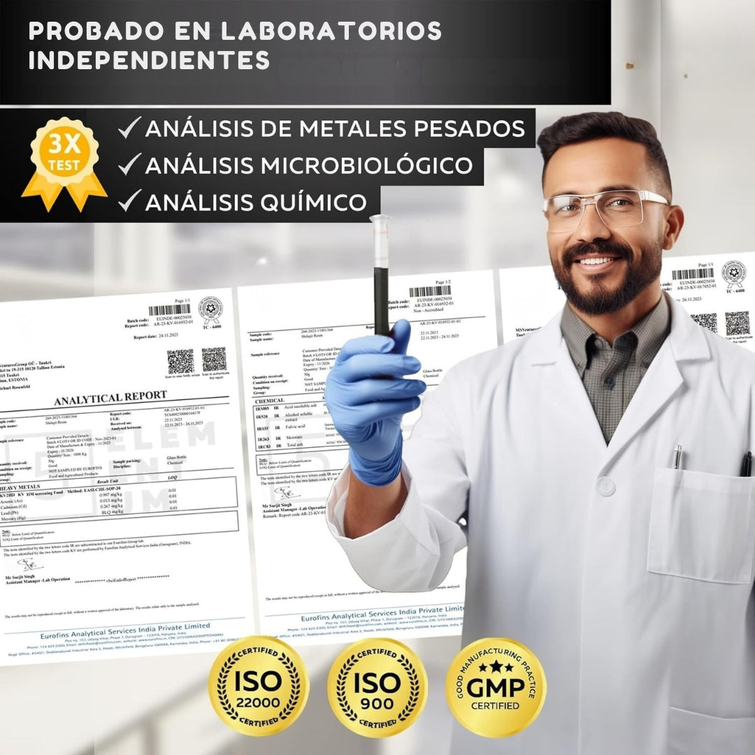 La resina de Shilajit es reconocida por la medicina ayurvédica desde hace siglos, y respaldada por estudios modernos que demuestran sus efectos positivos en la salud celular, hormonal y cognitiva. Contiene más de 85 minerales traza, incluyendo ácido fúlvico, responsable de su poder revitalizante.